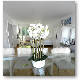 Die Wohneinheit hat ihren Zugang in der 2. Etage. Hier empfängt Sie eine geräumige Diele von der aus die Küche, der große Wohnbereich und das Gäste-WC erreichbar sind. Küche und Wohnzimmer haben einen direkten Zugang zur großen nach SW ausgerichteten Loggia mit traumhaften Grünblick.